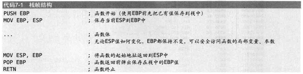 栈帧就是利用EBP(栈帧指针)寄存器访问栈内局部变量、参数、函数返回地址等手段