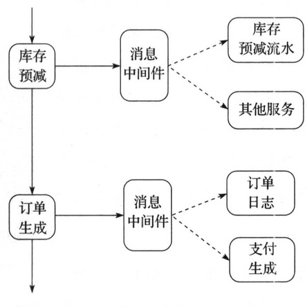 在订单创建或付款出现异常,比如实减库存失败、付款超时时,同样也会通过消息服务的方式