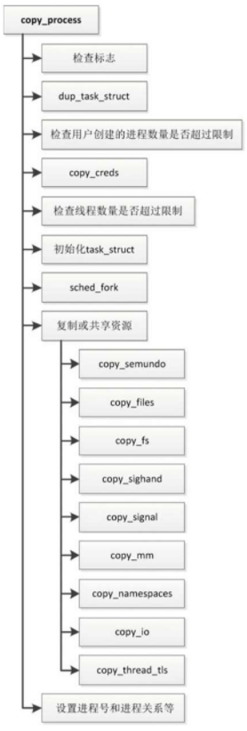 创建新进程的主要工作由函数copy_process实现,其执行流程如图