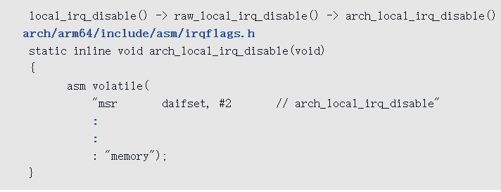 - 如果处理器处在内核模式(异常级别1),中断的入口是el1_irq。