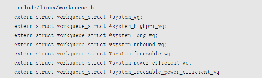 不过内核已经用另一个函数schedule_work包装了queue_work(keventd_wq, work)调用