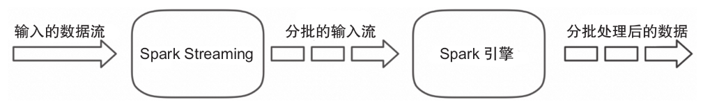 如图所示,Spark Streaming对流入的数据进行分批、转换和输出。微批处理无法满足低延迟的要求,只能算是近实时计算。